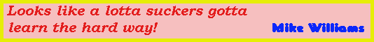 There is a lot of work and thought to be done before people on the harsher end of life let go of their victimised status. There is a long way to go before people in poverty and depression realise that the route of their anguish is their close-mindedness in assuming that there is only one system of living, a system in which they were born to be losers. Until people take a grip of their lives and realise that they have the potential to work themselves a better life without having to destroy others and until people stop wollowing in a self-pity which allows them the right to screw others then as the title of this article suggest, 'Looks like a lotta suckers gotta learn the hard way'